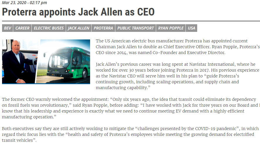 바이든 수혜주로 프로테라(ACTC)가 주목받고 있다. 20일 바이든 취임 후 전기버스 50만대 공약이 있고, 전기버스를 앞으로 사용하겠다는 공약때문이다. 2021년은 신재생에너지 관련 신생 기업들이 수혜를 많이 본다고 한다.