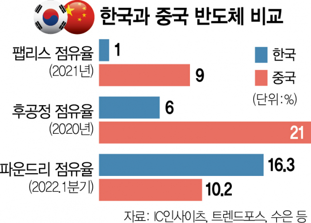 파운드리 같은경우 우리나라가 더 낫다는 의견이 있으나 중국에 펩리스회사는 2000개가 넘는다. 한국은 100개도 안된다. 펩리스가 설계를 하는 곳이다.